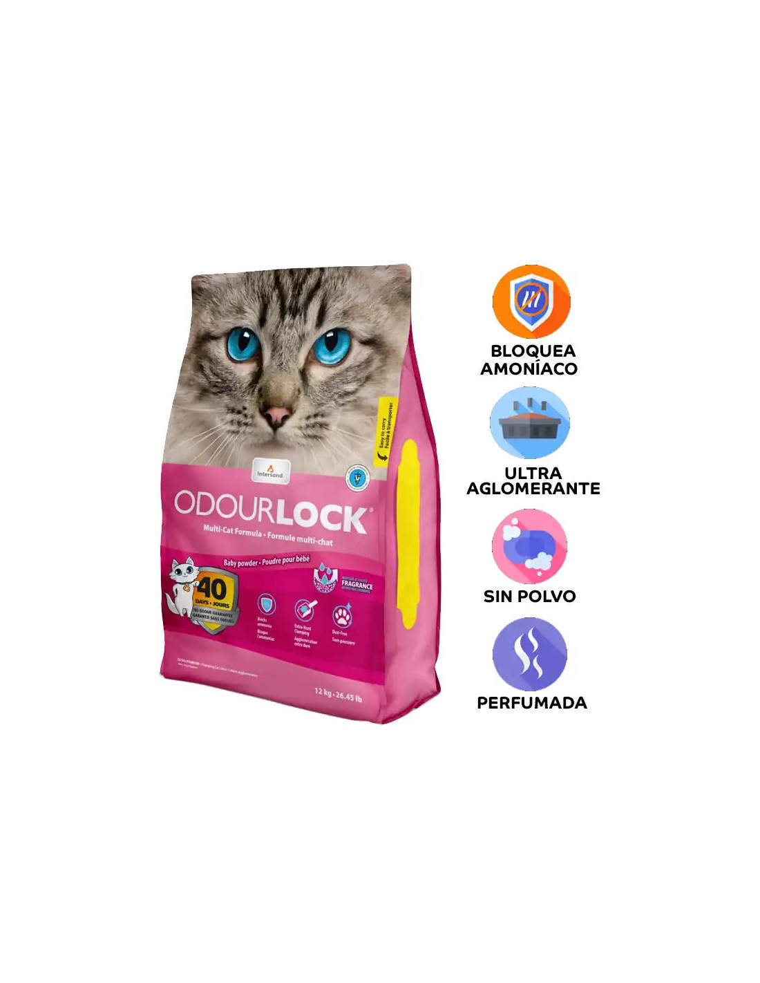 Arena Aglomerante Odourlock Talco Bebe Arena para gatos ultra aglomerante y perfumada.