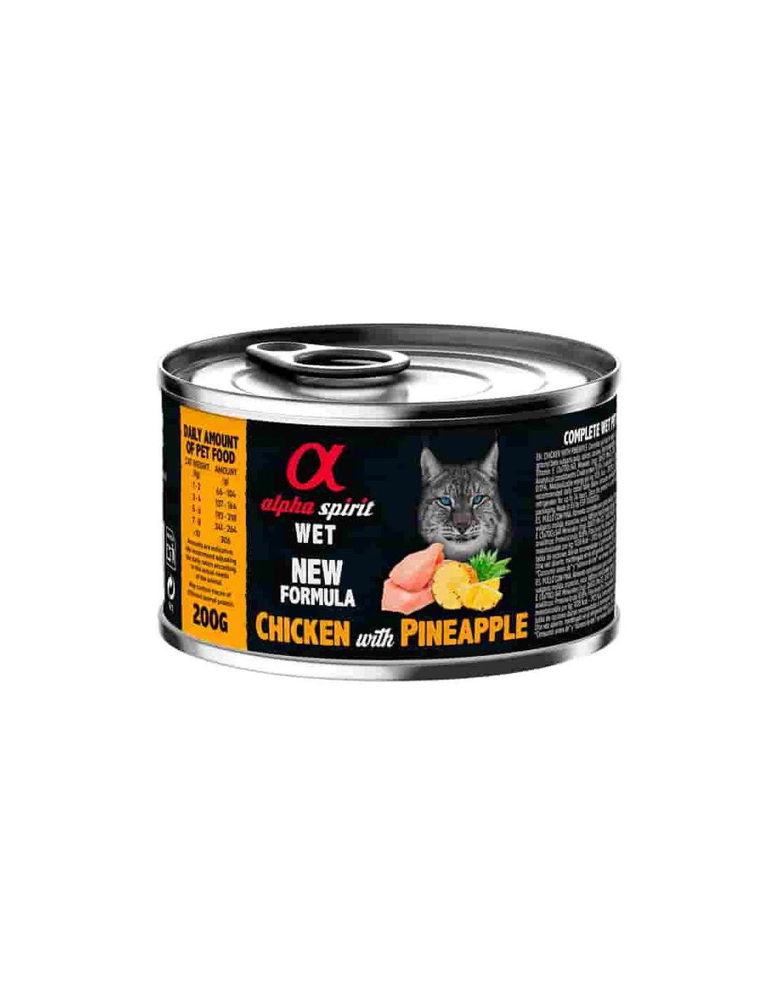 Lata Alpha Spirit Pollo con piña gatos es un alimento húmedo especial para gatitos.