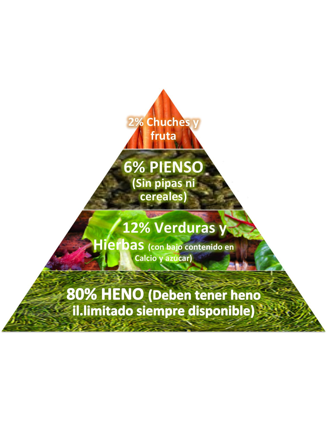 Dependiendo del tamaño, raza y edad del conejo una ración diaria media de 50 a 80 g aproximadamente. Renovar todos los días, tanto la comida como el agua.