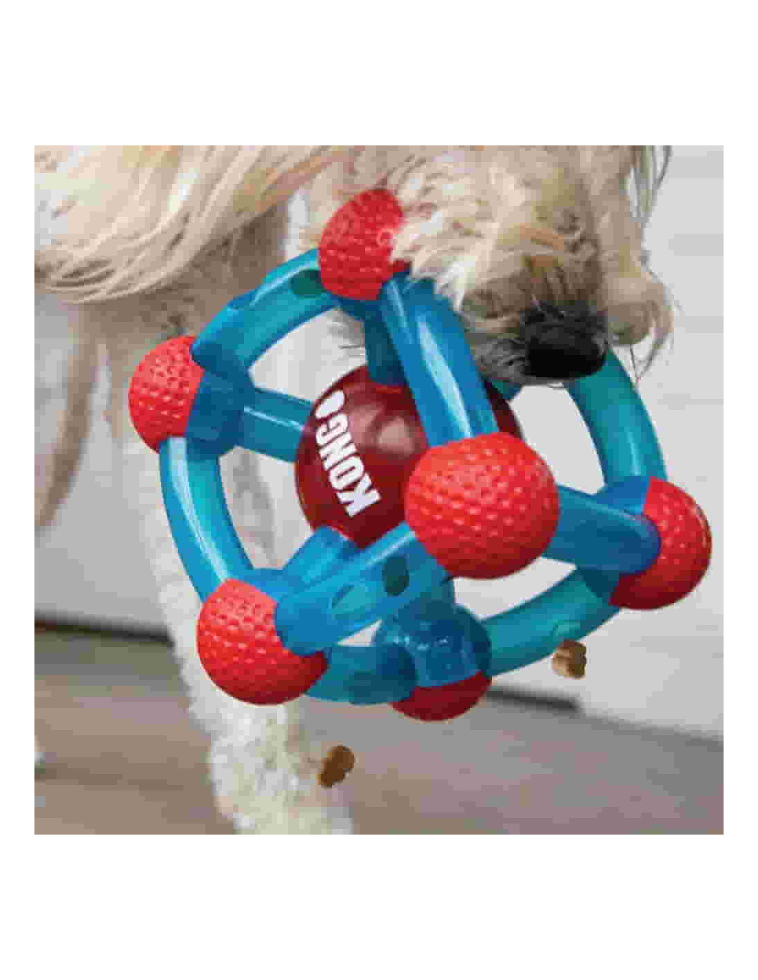 - Seis orificios para golosinas para una acción irresistiblemente impredecible.