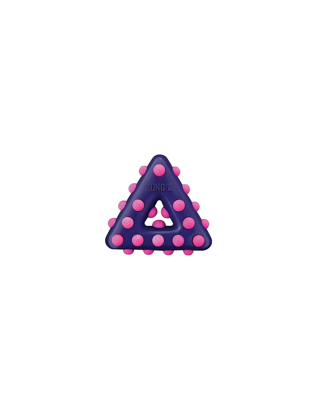 Juguete mordedor para perros Kong Dotz triangulo, ofrece una variedad de texturas en distintas capas, que seducen y deleitan a los masticadores más entusiastas. El juguetón e irregular rebote de este juguete estimula el entusiasmo de los perros, mientras que las protuberancias se ocupan de limpiar la dentadura y las encías.