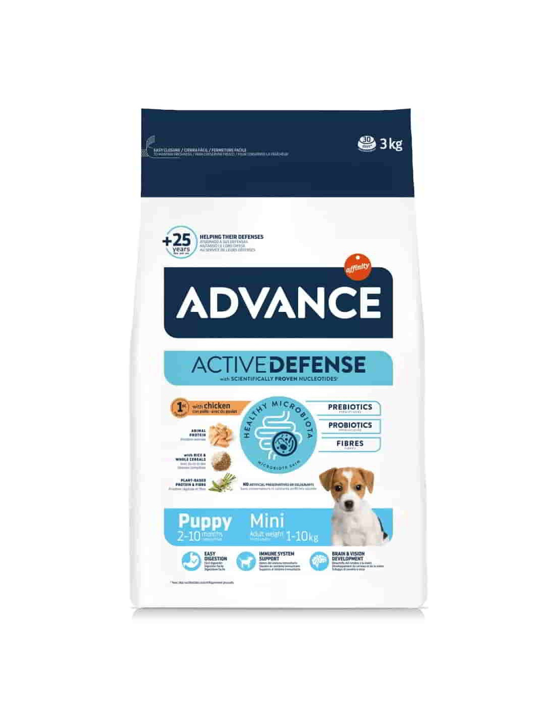 Advance Puppy Mini rico en pollo y arroz, especialmente indicado para cachorros ( de 2 a 12 meses de edad) de razas pequeñas y hembras gestantes o lactantes.