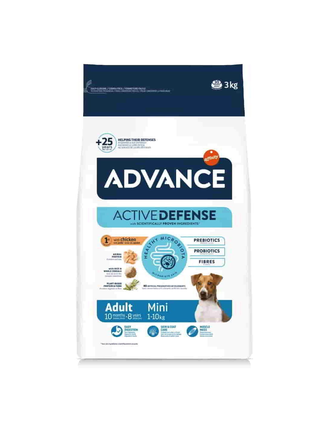 Advance Adult Mini rico en pollo y arroz, especialmente indicado para perros adultos ( de 8 meses a 8 años) de raza pequeña ( hasta 10 kg de peso adulto).