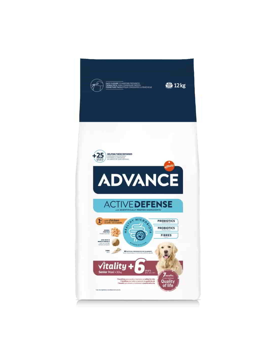 Advance Senior Maxi +6 rico en pollo y arroz, especialmente indicado para perros de más de 6 años ( más de 30 kg).