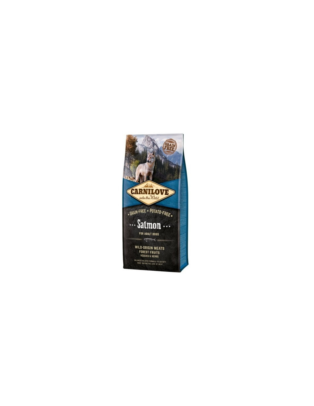 Pienso Carnilove Salmón perro adulto, es un pienso sin cereales ni patata.Contiene un 70% de carne y un 30% de frutas del bosque, verduras y hierbas