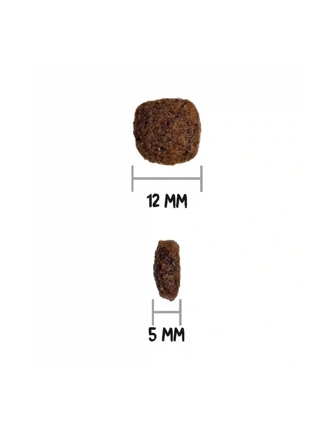 • Croquetas adaptadas. El tamaño de la croqueta está diseñado para cachorros de razas medianas, facilitando la masticación. Además, su proceso de cocción a baja temperatura ayuda a conservar mejor los nutrientes y mejora la digestibilidad.