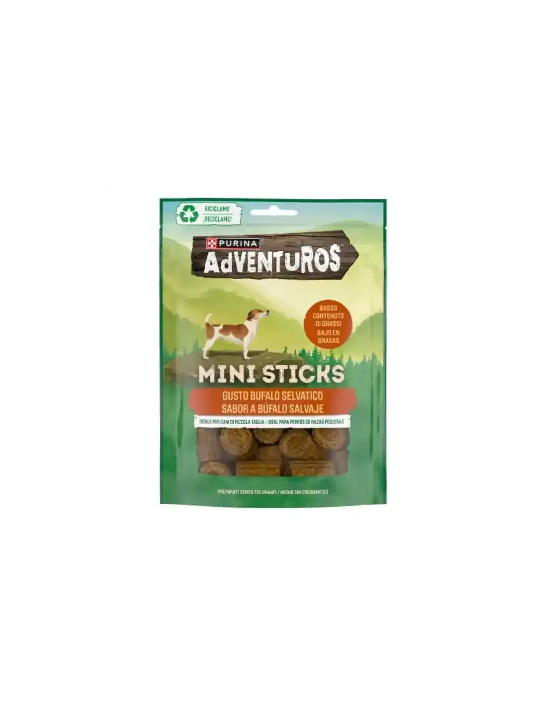 Los PURINA® ADVENTUROS® Mini Sticks Búfalo Salvaje están diseñados para despertar el instinto aventurero de tu perro. Con un intenso sabor inspirado en la carne de búfalo salvaje, estos snacks masticables ofrecen una experiencia sabrosa y estimulante que convierte cada premio en un momento especial.